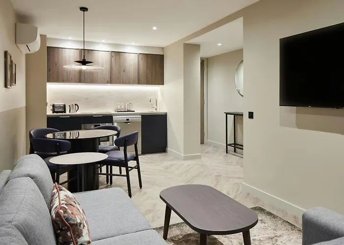 Die Gäste von Edinburgh können in diesem Hotel moderne Zimmer mit einem privaten Safe, einer Küchenzeile und einem Schreibtisch bekommen. Moderne Zimmer mit Interieur im modernen Stil sind mit modernen Möbeln eingerichtet.